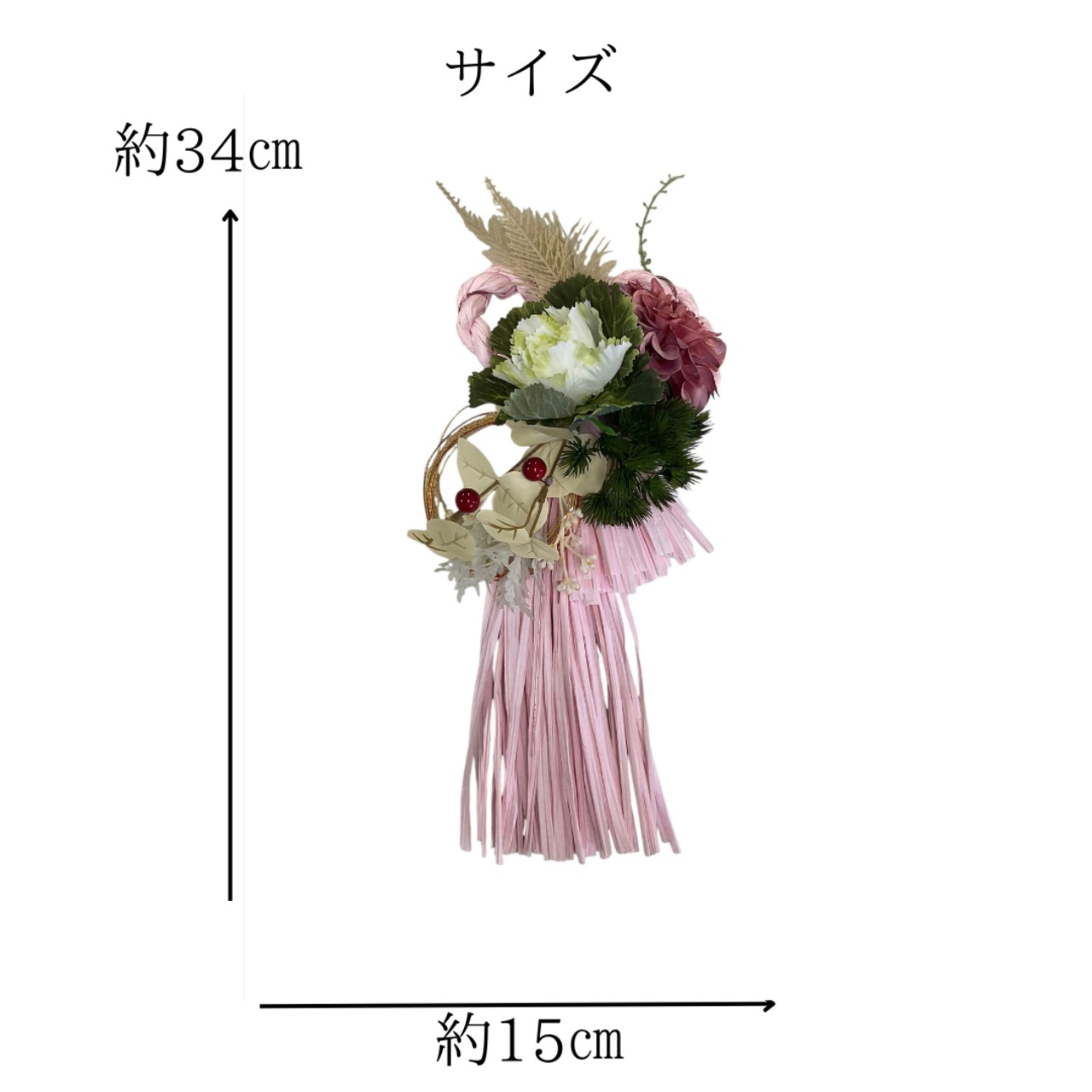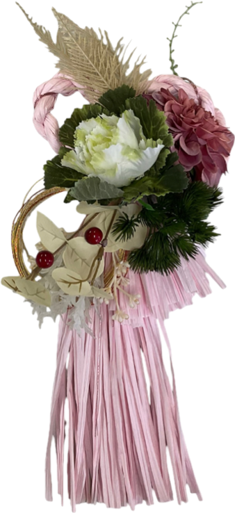 フェイクフラワーを使った、お正月の可愛いタッセルタイプのしめ縄になります