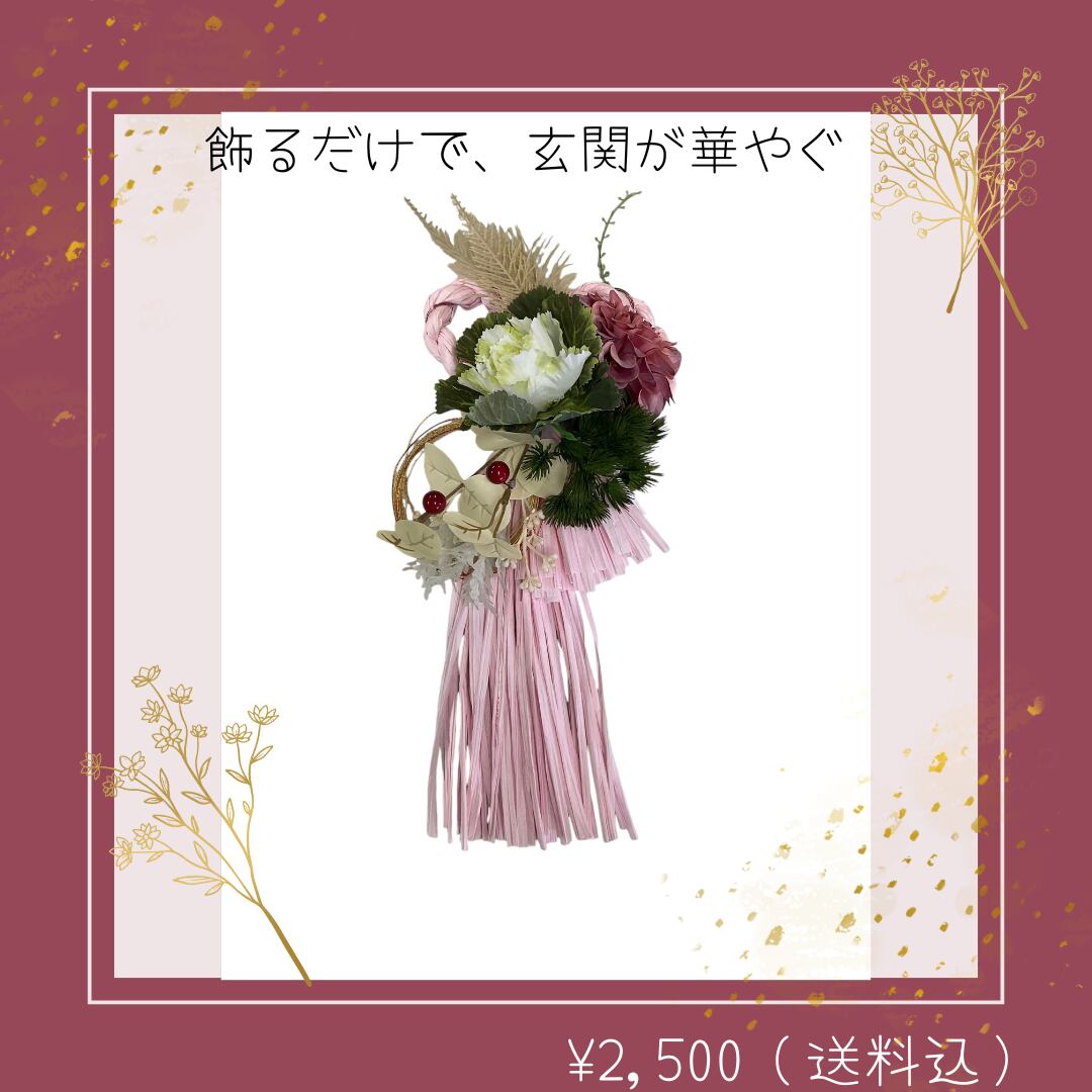 送料込み 正月飾り 玄関 モダン しめ縄 リース おしゃれ ハンドメイド フェイクフラワー