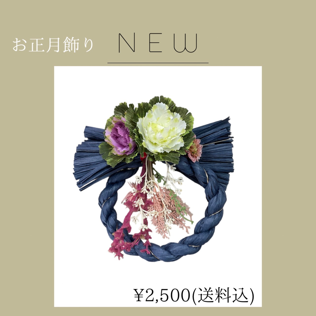 送料込み 正月飾り 玄関 モダン しめ縄 リース おしゃれ ハンドメイド フェイクフラワー